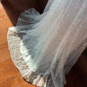 Sequined mesh overlay; 100% polyester lining