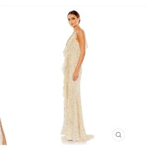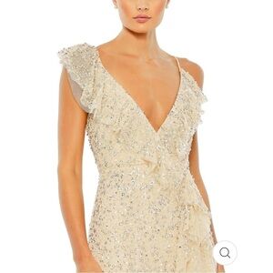 Mac Duggal EMBELLISHED RUFFLED FAUX WRAP SLEEVELESS GOWN size 0 NEW $598