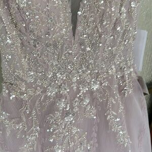 Mac Duggal EMBELLISHED SOFT TIE SLEEVELESS V NECK GOWN size 4 $798