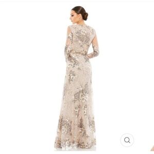 Mac Duggal EMBELLISHED V NECK ILLUSION LONG SLEEVE GOWN size 8 NEW $698 Taupe