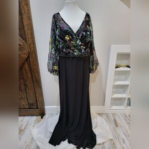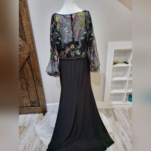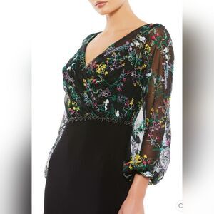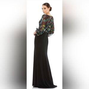 Mac Duggal EMBROIDERED ILLUSION PUFF SLEEVE COLUMN GOWN NWOT size 6 black (79379