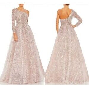 Mac Duggal EMBROIDERED ONE SHOULDER BODICE BALLGOWN 20232 SZ 8 $798 PINK