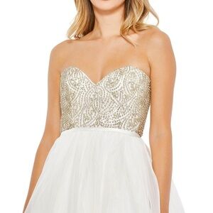 Mac Duggal Elegant Strapless White and rhinestone strapless size 2
