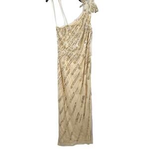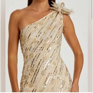 Mac Duggal Embellished Floral Detail One Shoulder Gown Nude Gold Size 10 NWT