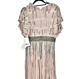 Mac Duggal Embellished Full Length Layered Sleeve Gown Dress Rose Pink SZ 8 NWT