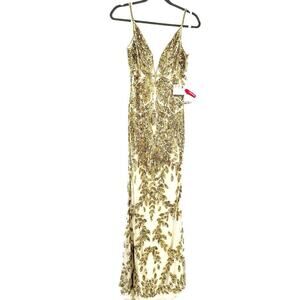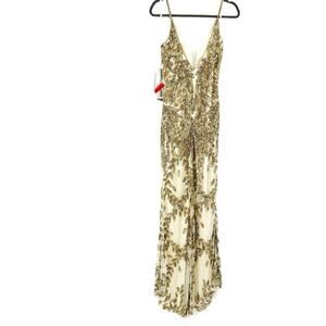 Mac Duggal Embellished Gold Leaf Long Evening Gown Nude/Gold Size 6 NWT