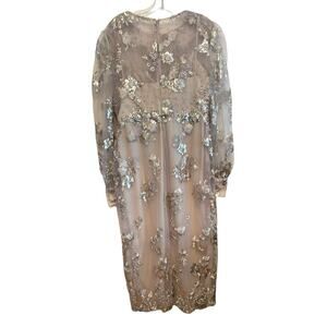 Mac Duggal Embellished High Neck Illusion Long Sleeve Midi Dress Size 10 NWT