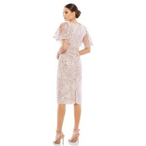 Mac Duggal Embellished Illusion Butterfly Sleeve Cocktail Midi Dress size 10 NWT