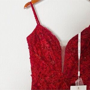 Mac Duggal Embellished Plunge Neck Illusion Mermaid Gown