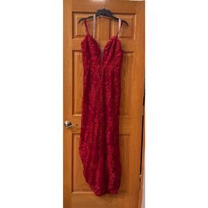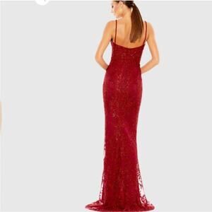 Mac Duggal Embellished Plunge Neck red Mermaid Gown - Size 8 (New)