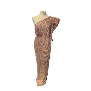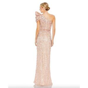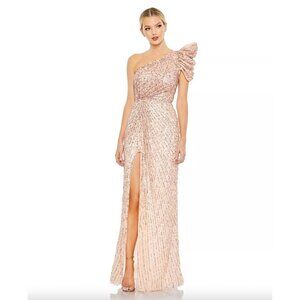 Mac Duggal Embellished Puff One Shoulder Column Gown Apricot Womens Size 14
