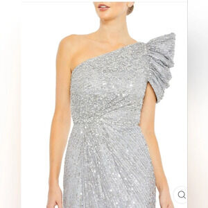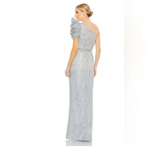 Mac Duggal, Embellished Puff One Shoulder Gown, Silver, Size 8, NWT.