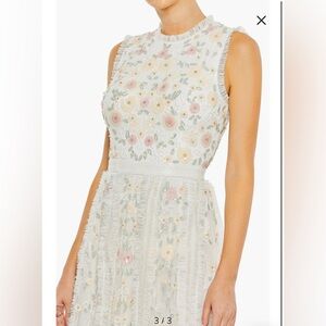 Details: Fully Lined, Ruffle Trims, Full Back, Zipper Closure, Floral Embellished, Full Length Hem