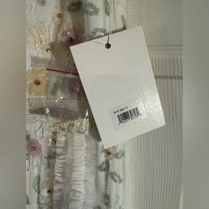 Elegant white dress with colorful floral embroidery. Perfect for any occasion.