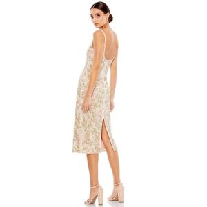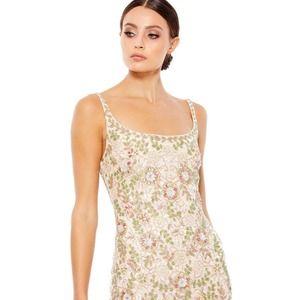 This embellished dress mesmerizes in a sleeveless, scoop neckline with thin shoulder straps. The dress has a fitted bodice and a scoop back. The skirt forms a fitted silhouette and is styled with a center back slit. This Mac Duggal dress is sure to be an attention-grabber in any occasion.
