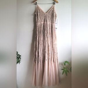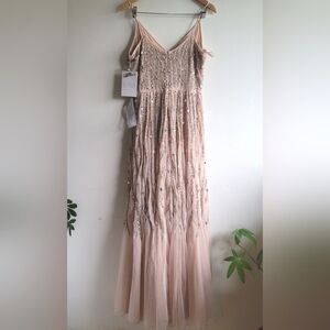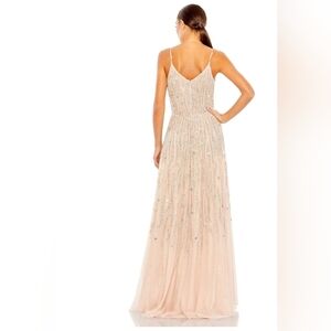 Mac Duggal, Embellished V-neck Sleeveless Column Gown, Peach, Size 8 -NWT