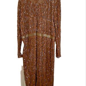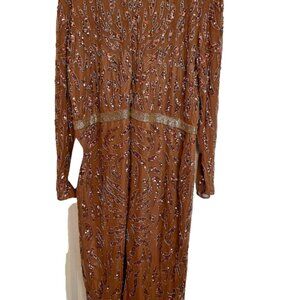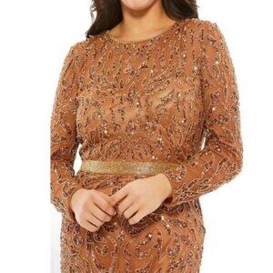 Mac Duggal Embellished Long Sleeve High Neck Midi Dress Copper 24W NWT $498