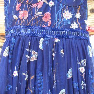 Mac Duggal Embroidered Bustier Gown Dress Indigo