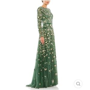 Mac Duggal Emerald Floral Long Sleeve Gown