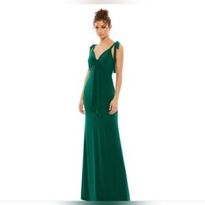 Mac Duggal Emerald Green Bow Tie Straps Maxi Dress- Great For HOMECOMING OR PROM