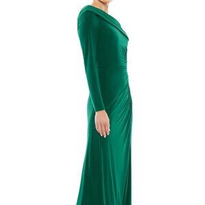 Mac Duggal Emerald Green Foldover Neck One-Shoulder Jersey Gown