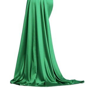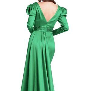Mac Duggal Emerald Green Puff Long Sleeve Satin Faux Wrap Gown