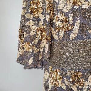Mac Duggal Sequin & Bead Embellished Cape V-Neck Gown Platinum Gold 4574D Size 8
