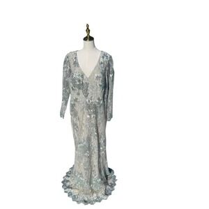 Mac Duggal Evening Gown Dress Size 20 Floral Embroidered Sequin Lace 67539 $698