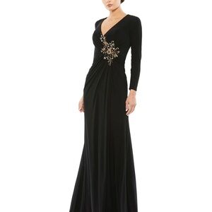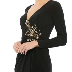 Mac Duggal FAUX WRAP LONG SLEEVE GOWN W/ APPLIQUÉ DETAIL NWT SZ 2✨✨🔥🔥