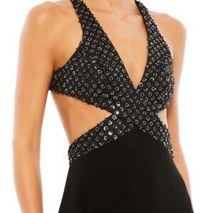 Mac Duggal FLORAL SEQUINED CRISS CROSS BODICE GOWN NWT size 2 black (68166)