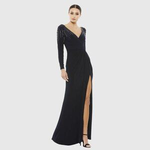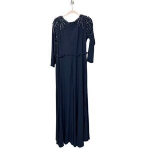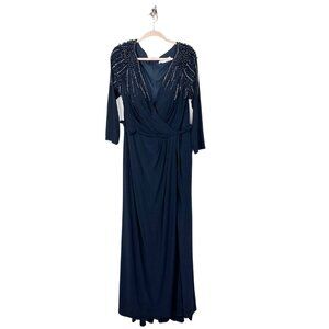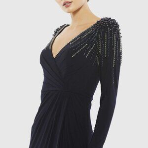 Mac Duggal Faux Wrap Jersey Gown w/ Embellished Accents Midnight 14 #8286