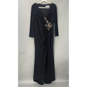 Mac Duggal Faux Wrap Long Gown Womens 10 Embellished Old Hollywood Glam Modest