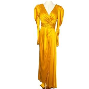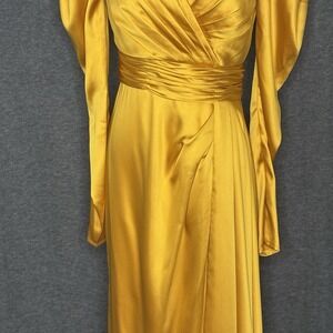 Mac Duggal Faux Wrap Mango Yellow Long Sleeve A Line Gown Womens Size 6 12404