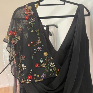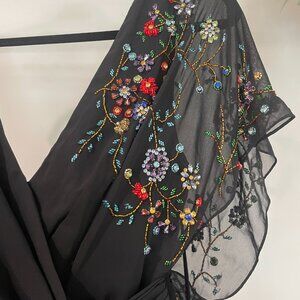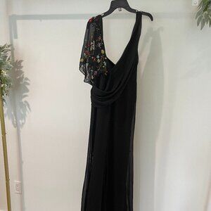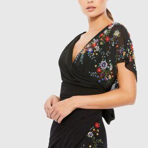 Mac Duggal Faux Wrap Multi Colored Beaded Floral Gown