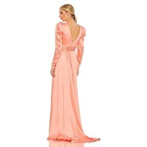 Mac Duggal Faux Wrap Puff Shoulder Long Sleeve A-Line Gown Peach Size 12 12404