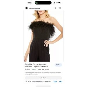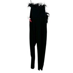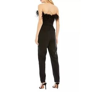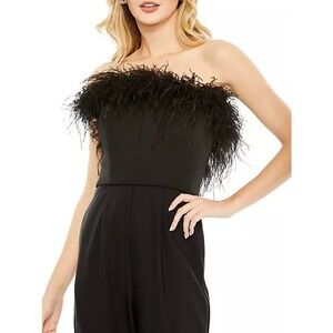 Mac Duggal Feathered Strapless Jumpsuit Back Zip Black Women's Size 12 NWT