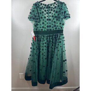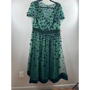 Mac Duggal Floral Appliqué Tea Cocktail Dress Green 3D Size 14 Style 67007