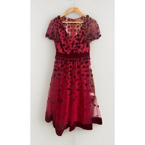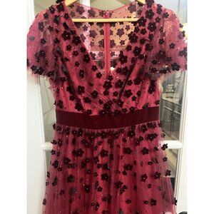Mac Duggal, Floral Applique Cocktail Midi Dress in Burgundy Size 8 Prom Formal