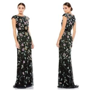Mac Duggal Floral Beaded Cap Sleeve Lined Evening Gown Caramel Size 2 NWT