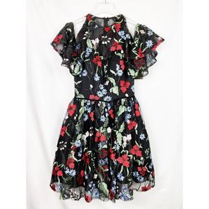 Mac Duggal Floral Cold Shoulder Fit-&-Flare Dress