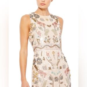 Mac Duggal Floral Embellished Midi Dress - Cream and Gold