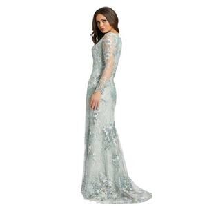 Mac Duggal Floral Embellished V-Neck Illusion Long Sleeve Gown 67539 Seamist 18