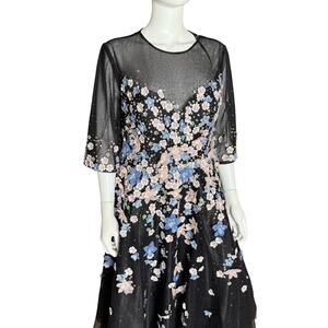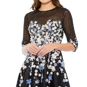 Mac Duggal Floral Embroidered A-Line Tea-Length Cocktail Dress Women’s Sz 14