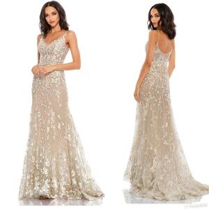 Mac Duggal Floral Embroidered Corset Bodice Gown