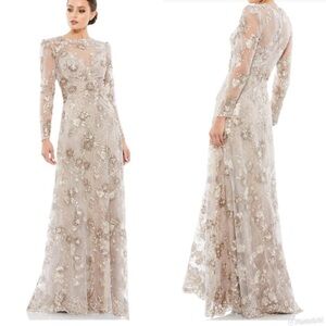 Mac Duggal Floral Embroidered Illusion Long Sleeve Evening Gown