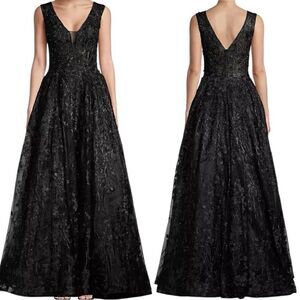 Mac Duggal Floral Embroidered Illusion V-Neck Gown Black Maxi Dress NEW Size 2