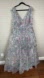 Shimmering embroidered flowers define this sequin-patterned ballgown with a plunging V-neckline and floor-sweeping train.