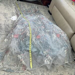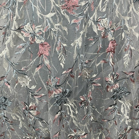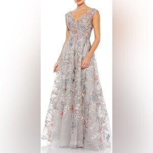 Mac Duggal Floral Embroidered V Neck Tulle Ballgown Illusion Cap Sleeve 20263