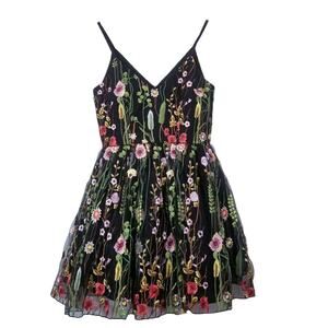 Mac Duggal Floral Embroidery Fit and Flare Mini Dress Fairy-core Whimsical
