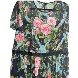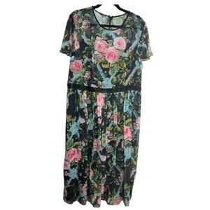 Mac Duggal Floral Illusion Flutter Sleeve Midi Dress, Size 12, NWT